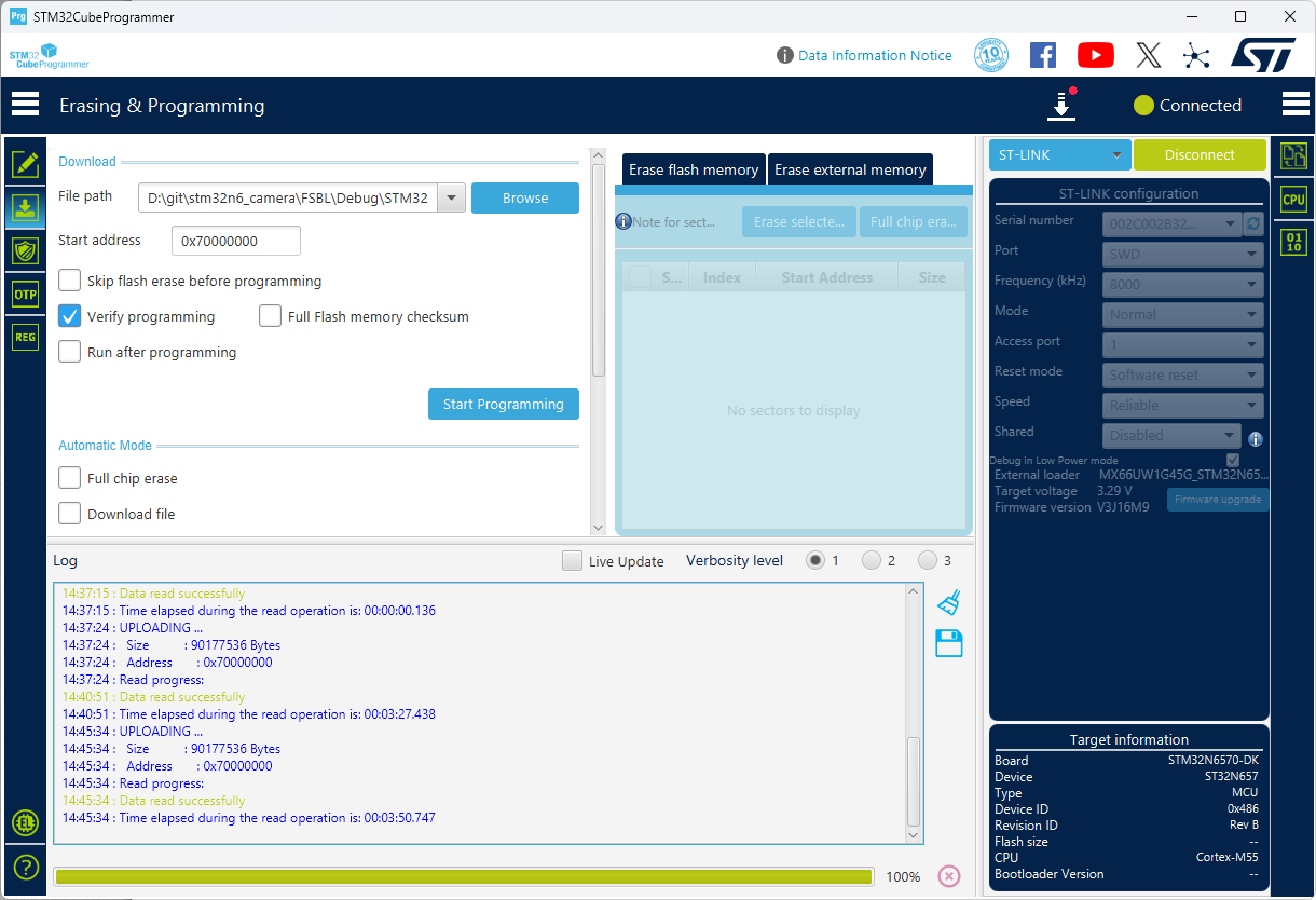 After programming is complete, set the boot mode in external flash mode. (BOOT1 switch position is 1-2)