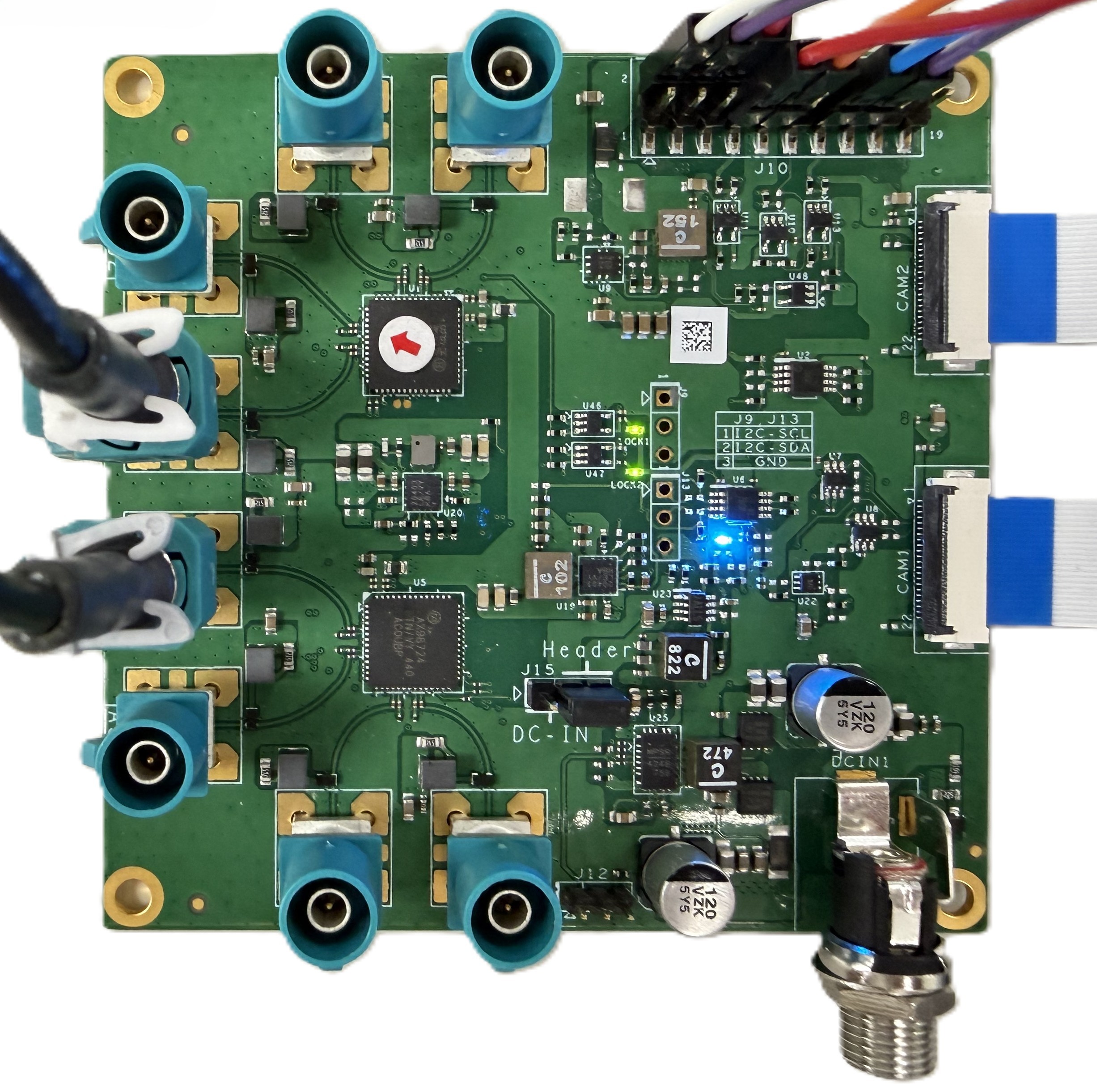 In the adaptor, PDB1/2 are the power down pins of the Deserializer, which should be high normally. INTB1/2 are the error pins of the Deserializer, which will be high when an error occurs. EXT_SYNC_IN is the deserializer's external frame sync signal pin, which can be used with the fsync-external device tree. Users can input a PWM signal to synchronize the two deserializers.